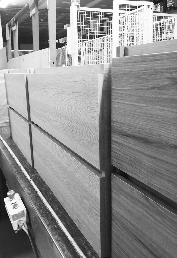 Facilitamos la entrega del conjunto en formato Palletbox, una única caja en la que el cliente recibe el mueble de baño montado, el lavabo y el espejo; todo listo para su colocación.