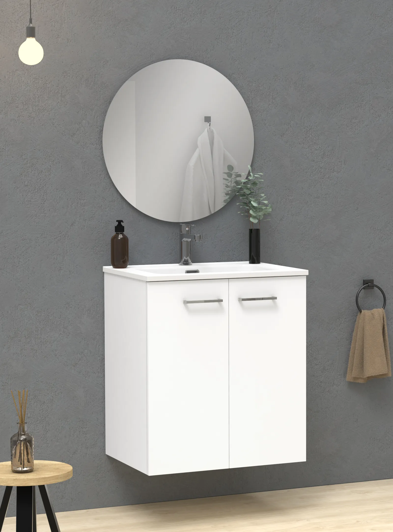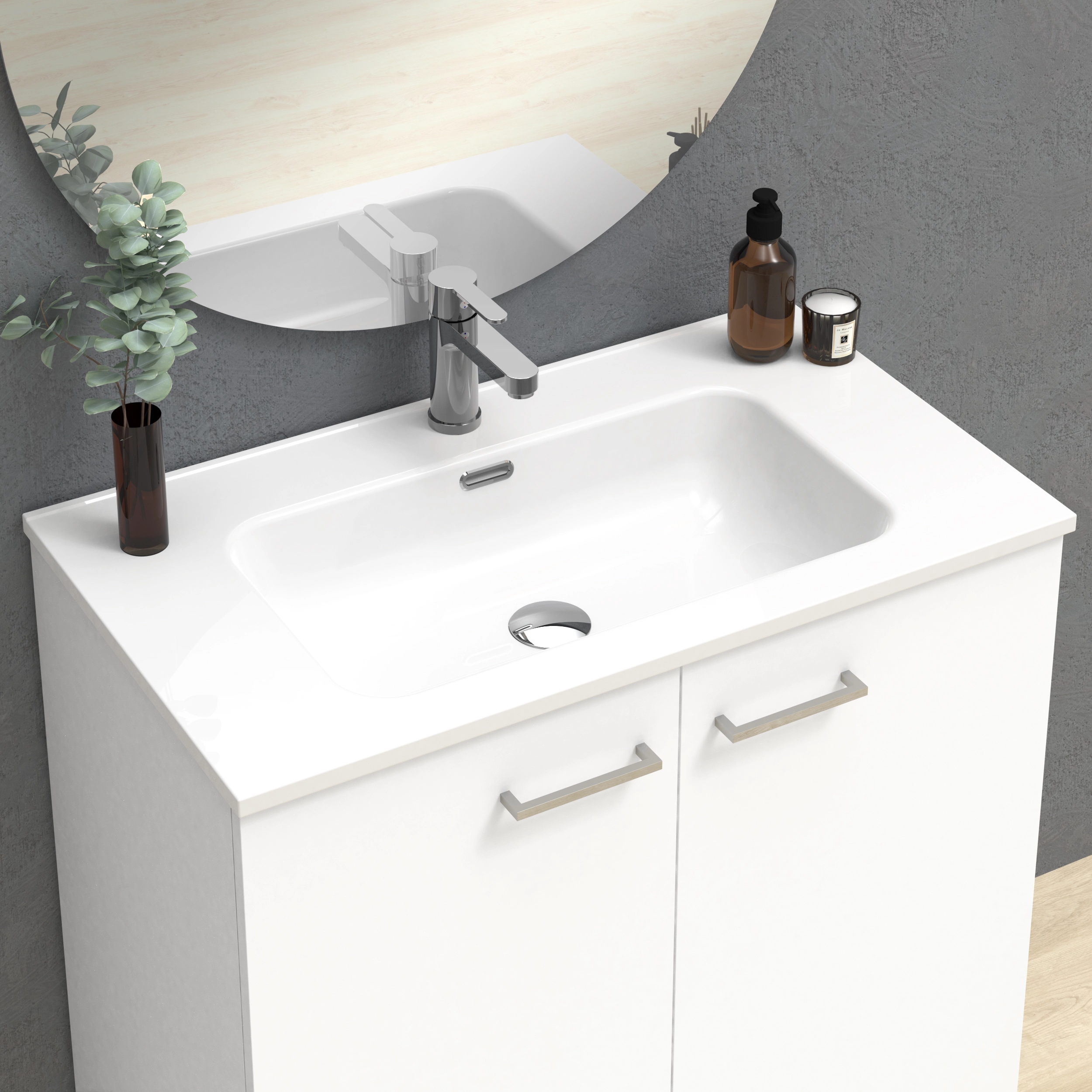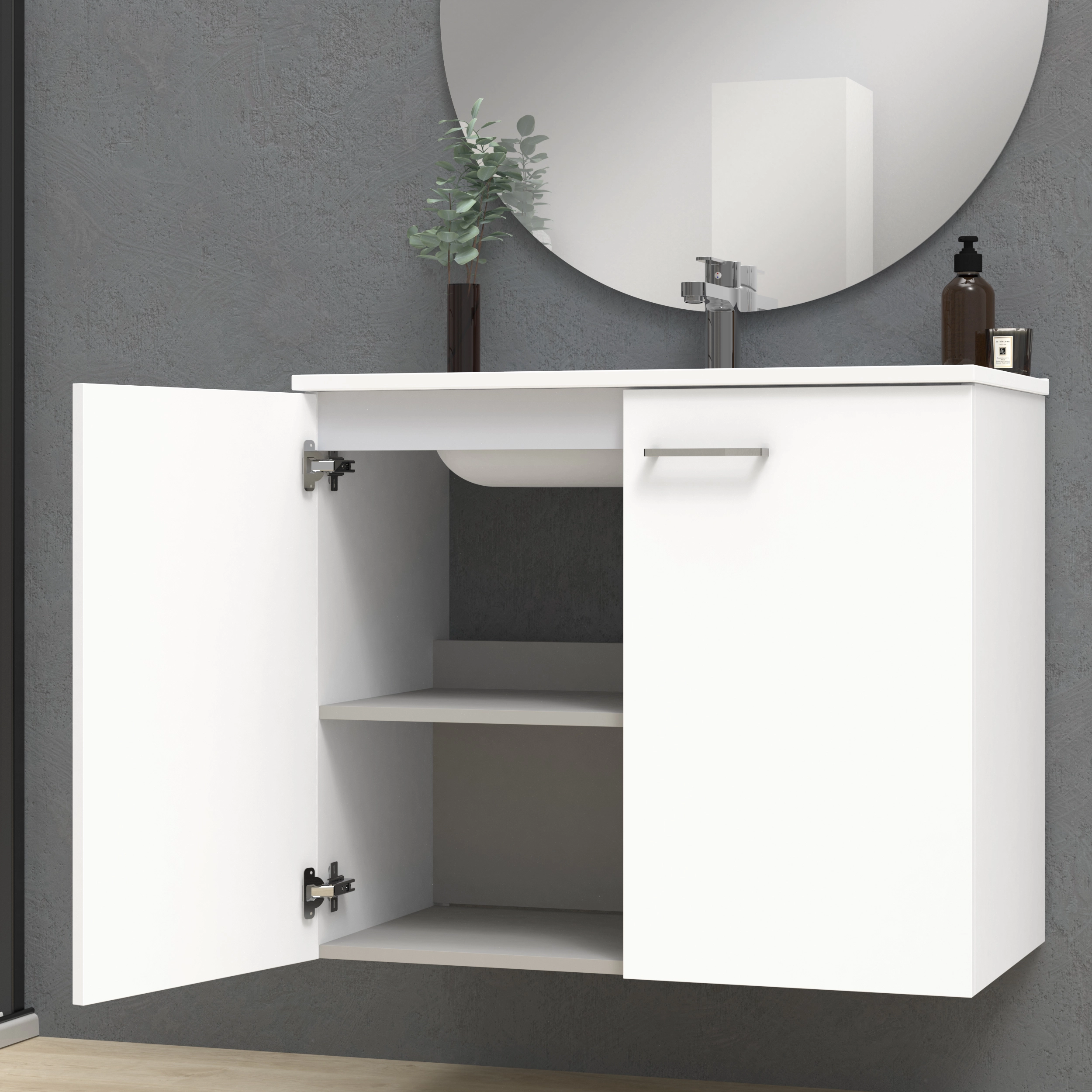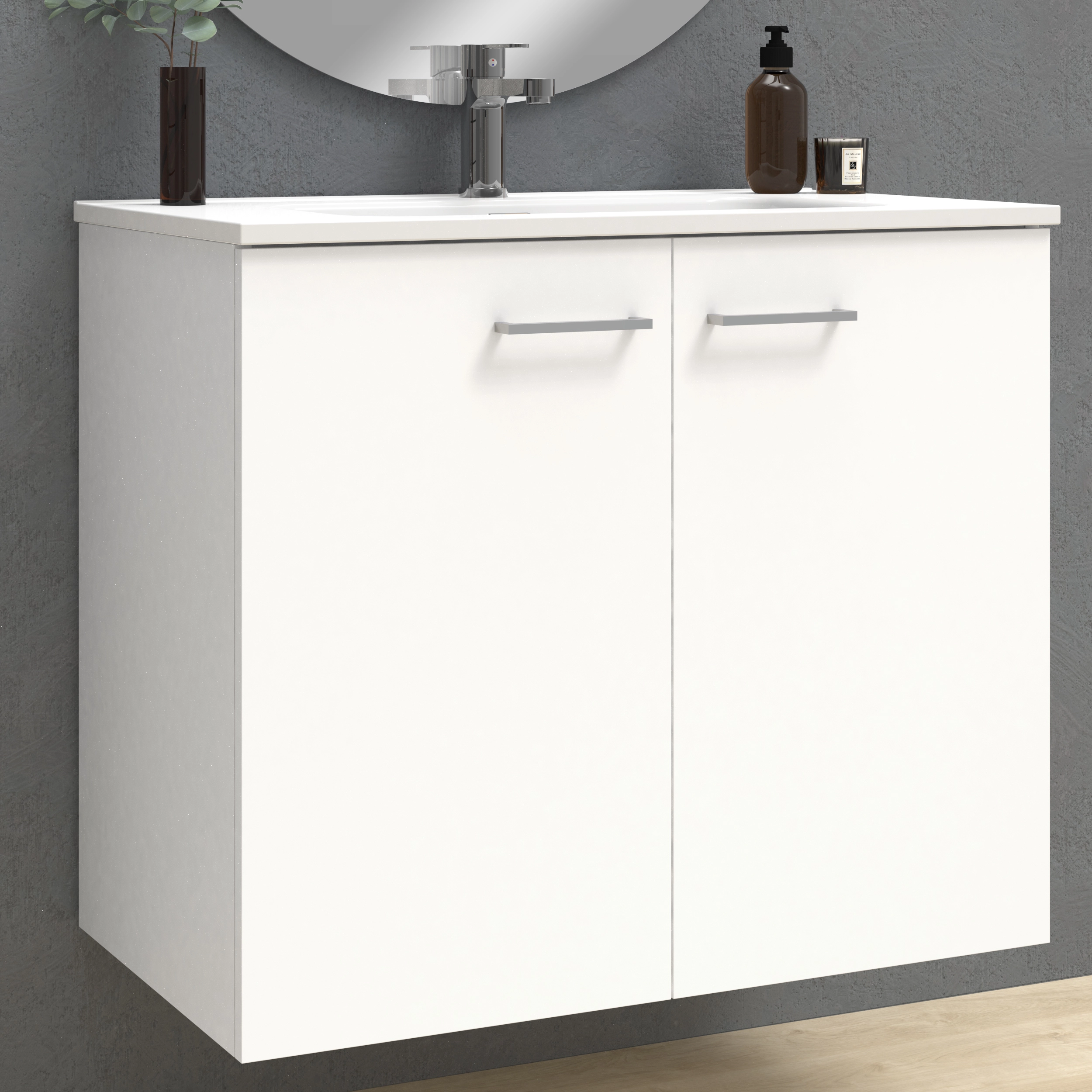 Mueble de 2 puertas suspendido, con apertura mediante tirador.