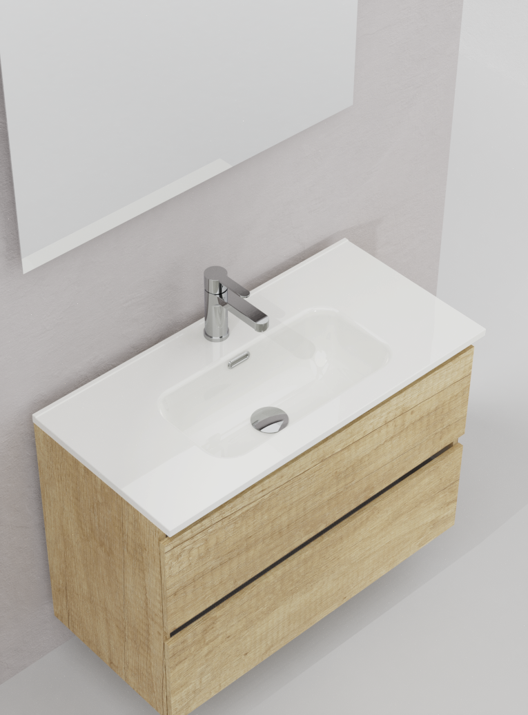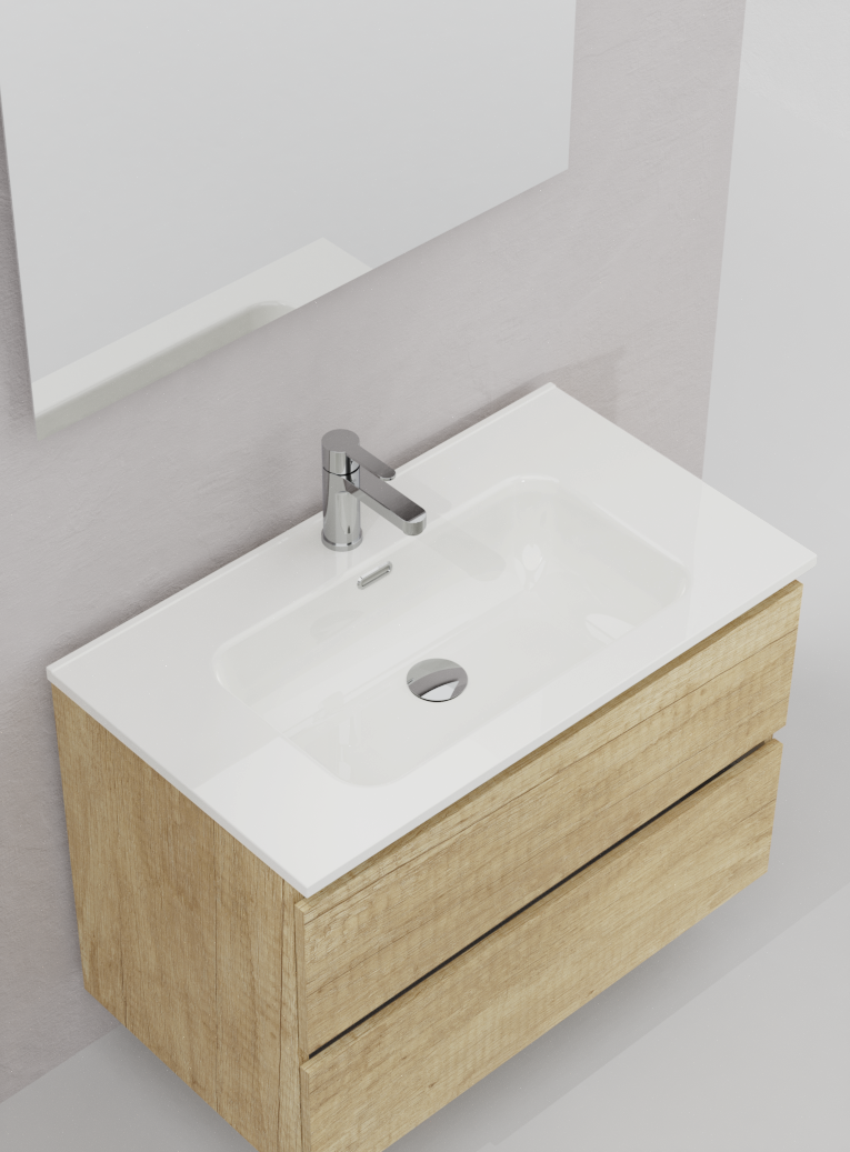 Lavabo encastado de cerámica blanca que se integra en nuestros muebles, tanto de fondo estándar como reducido. Diseño sencillo y funcional. Solución sencilla, donde aparte de la poza, dispone de repisa en ambos lados para poder apoyar todos tus esenciales de baño.