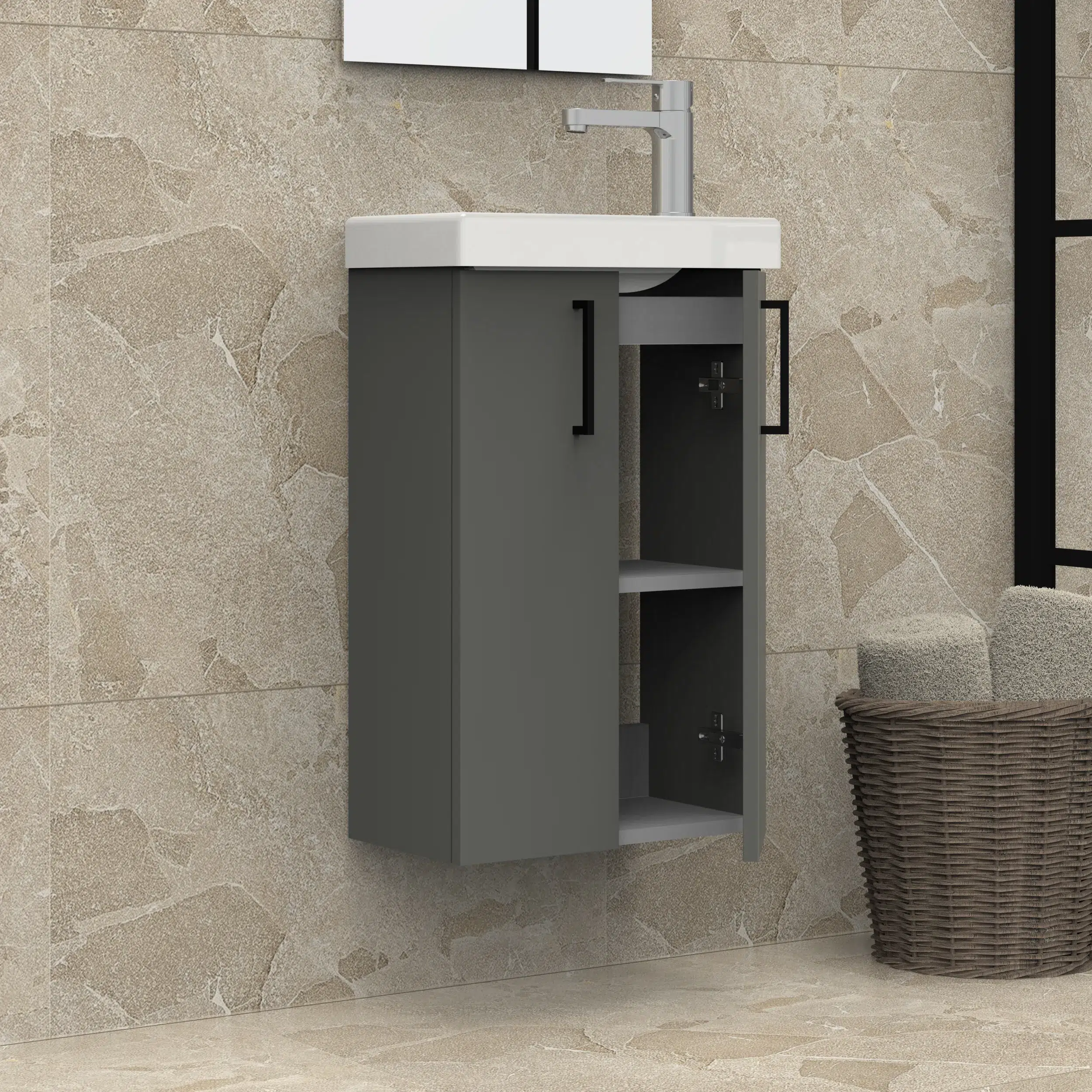 Con dos puertas, proporciona un almacenamiento eficiente para mantener tus esenciales de baño organizados.