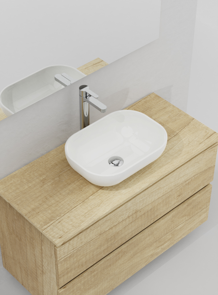 El lavabo sobre encimera de forma ovalada es una opción elegante y discreta, ideal para quienes buscan una combinación de estilo y funcionalidad en su baño.